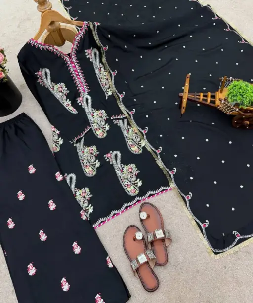 | Dupatta | Heavy Pure Chinnon with Embroidery sequence work |