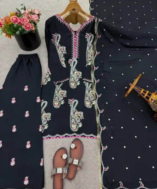| Top | Heavy Pure Chinnon with Embroidery Sequence Work Length: 36- 37 inches |