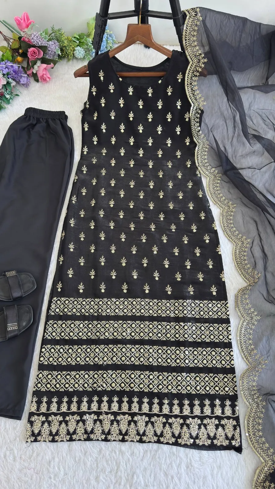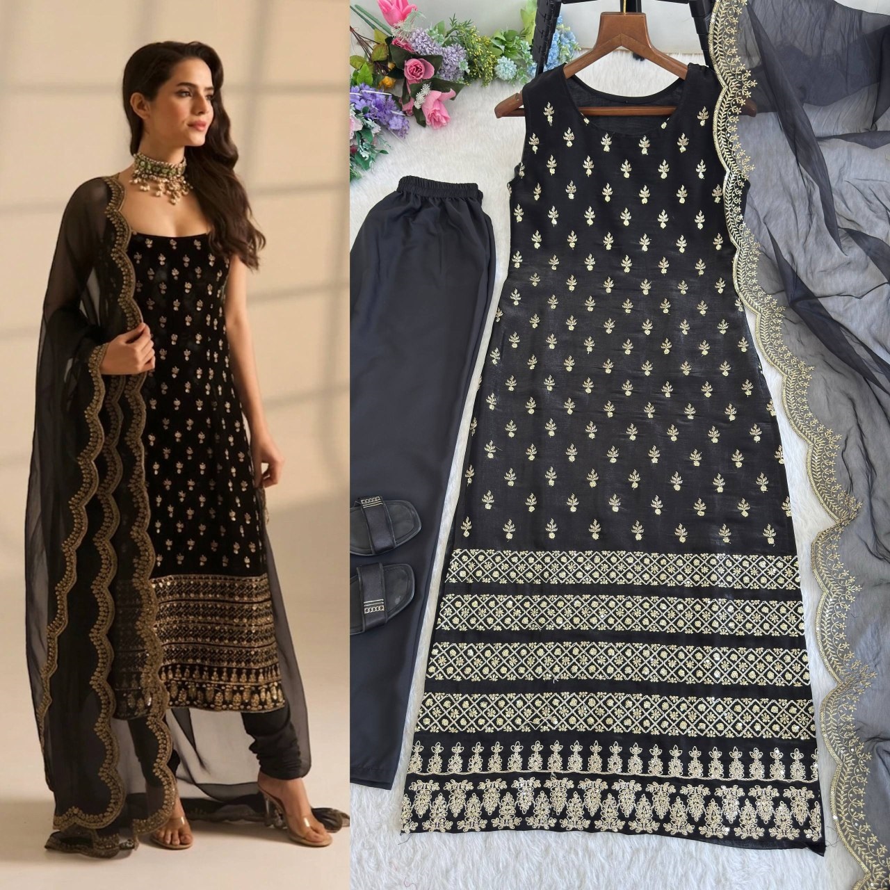 Black Sleeveless 3 Piece Kurti Set for Pooja Function