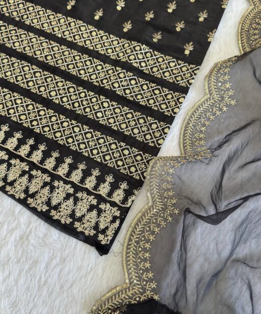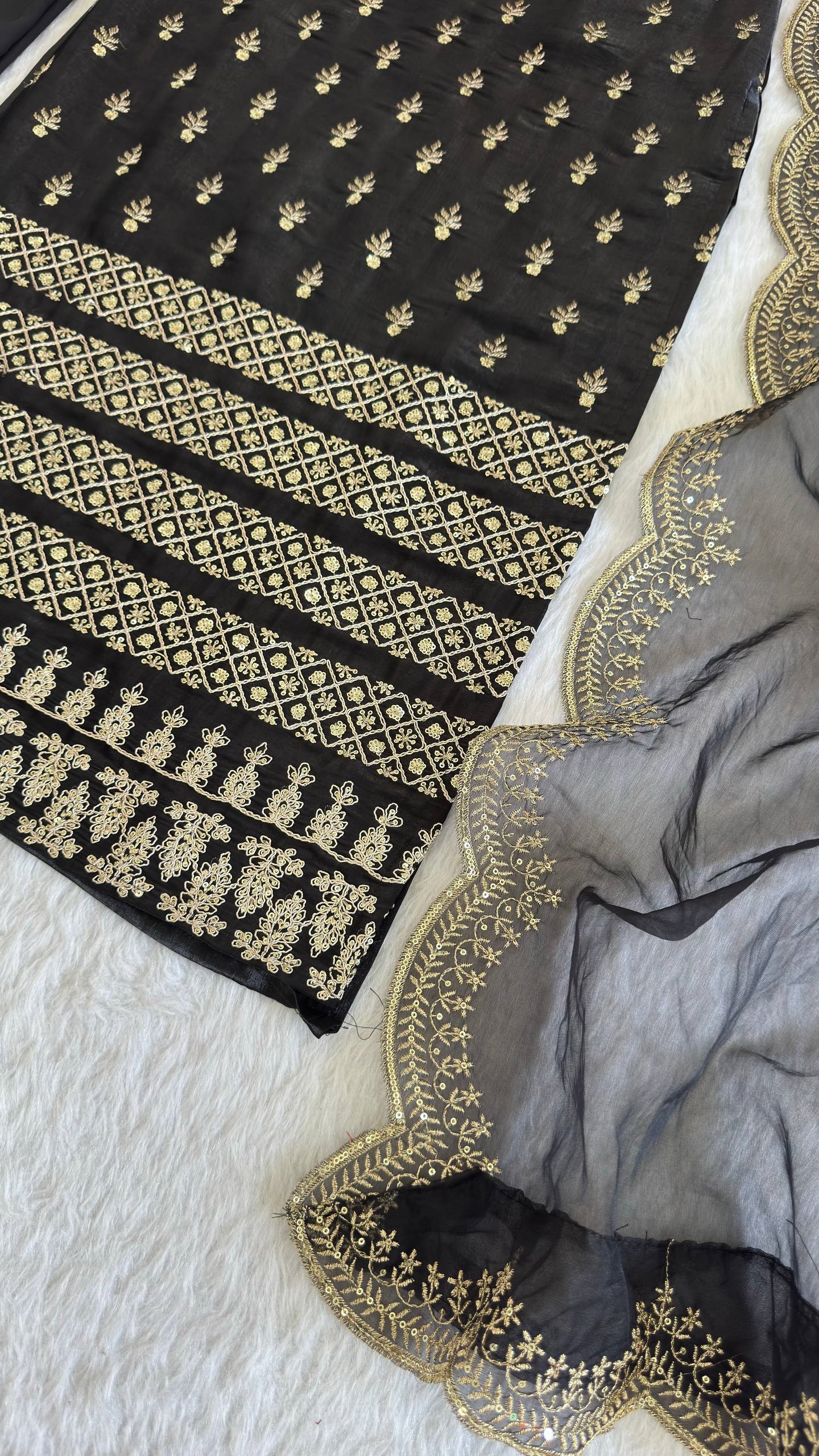 | Dupatta | Nylon Organza Silk With Hand Dyeing Golden zari & Sequence work Four Side Work 2.20 MTR Length |