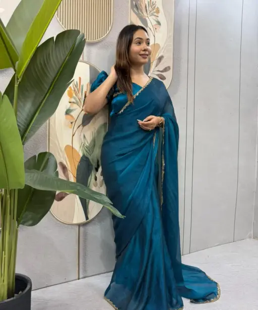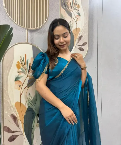 Blue Color wedding Zip and go Saree with Beads