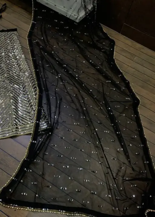 DupattaNet Dupatta with sequence & thread work + Pearl border work