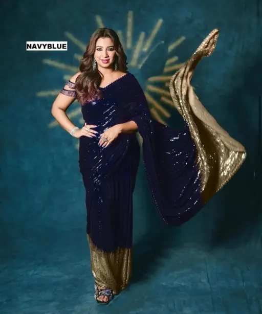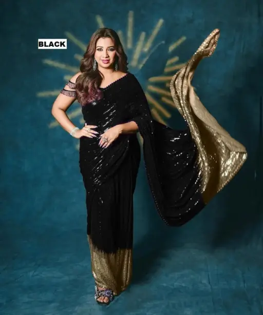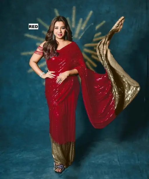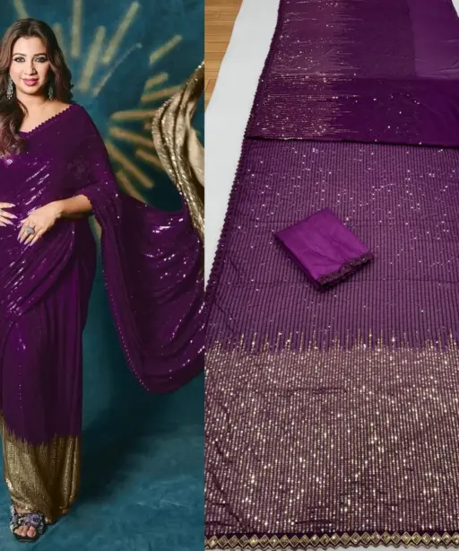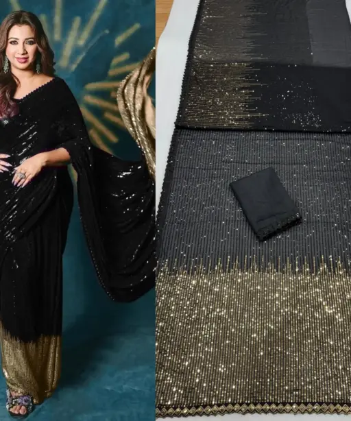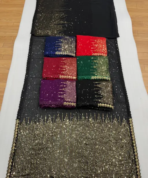 | Saree | Heavy 60 Gram Georgette with Dual Sequins Embroidery Work (5mm & 3mm), Heavy Cpallu, 5mm Sequins Cutwork Lace Border, 4.4 Mtr Work Done |