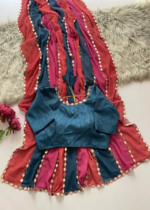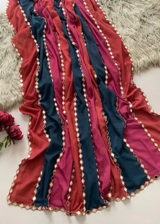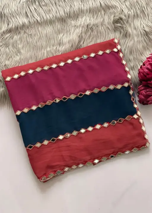 | Saree | Full Saree of Heavy quality Faux Georgette Patta Print Lining Embroidery Coadding Lace with Original Mirror Work done in Saree ORIGINAL MIRROR WORK DONE IN WHOLE SAREE 4.4 MTR WORK IN SAREE |