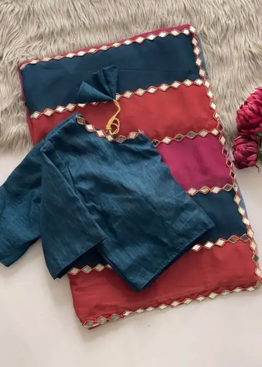| Blouse | UNSTITCHED BLOUSE OF MONO BANGLORI SILK WITH LACE & REAL MIRROR |