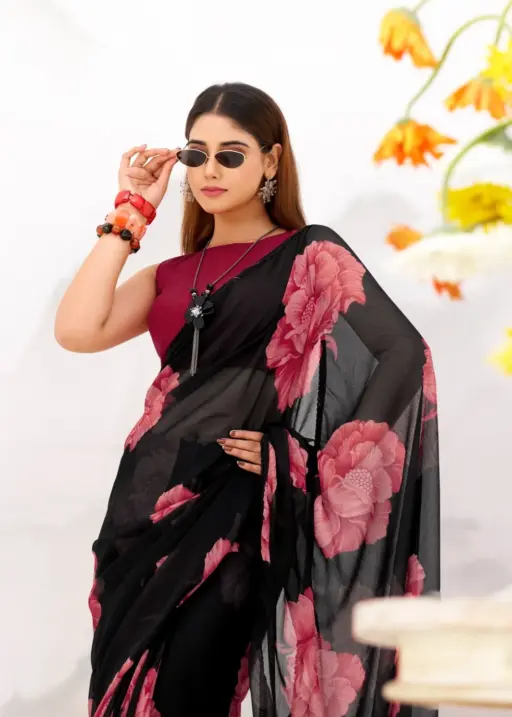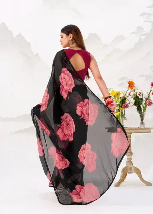 | Saree | Chiffon Floral Print with Lace Border 5.5 meter |