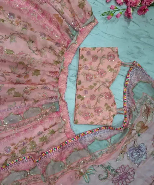 BlousePremium Taby Silk Embellished With Beautiful Print With Embroidery Sequins Work Beautiful  Hand Real Mirror work( Unstitched  Fabric )