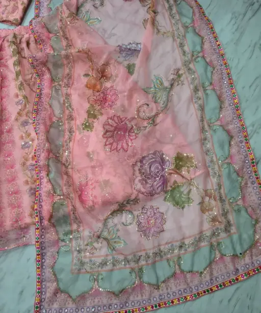 DupattaPremium Taby Silk With Beautiful Print With Beautiful Embroidery Sequins Work Hand Real Mirror Work With Beautiful Multicolour Work Lace Border Work