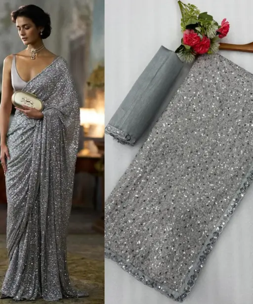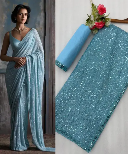 | Saree | Faux Georgette with Heavy 5MM & 3MM Khichdi Sequins Embroidery Work with 5MM Sequins Cutwork Lace Border |