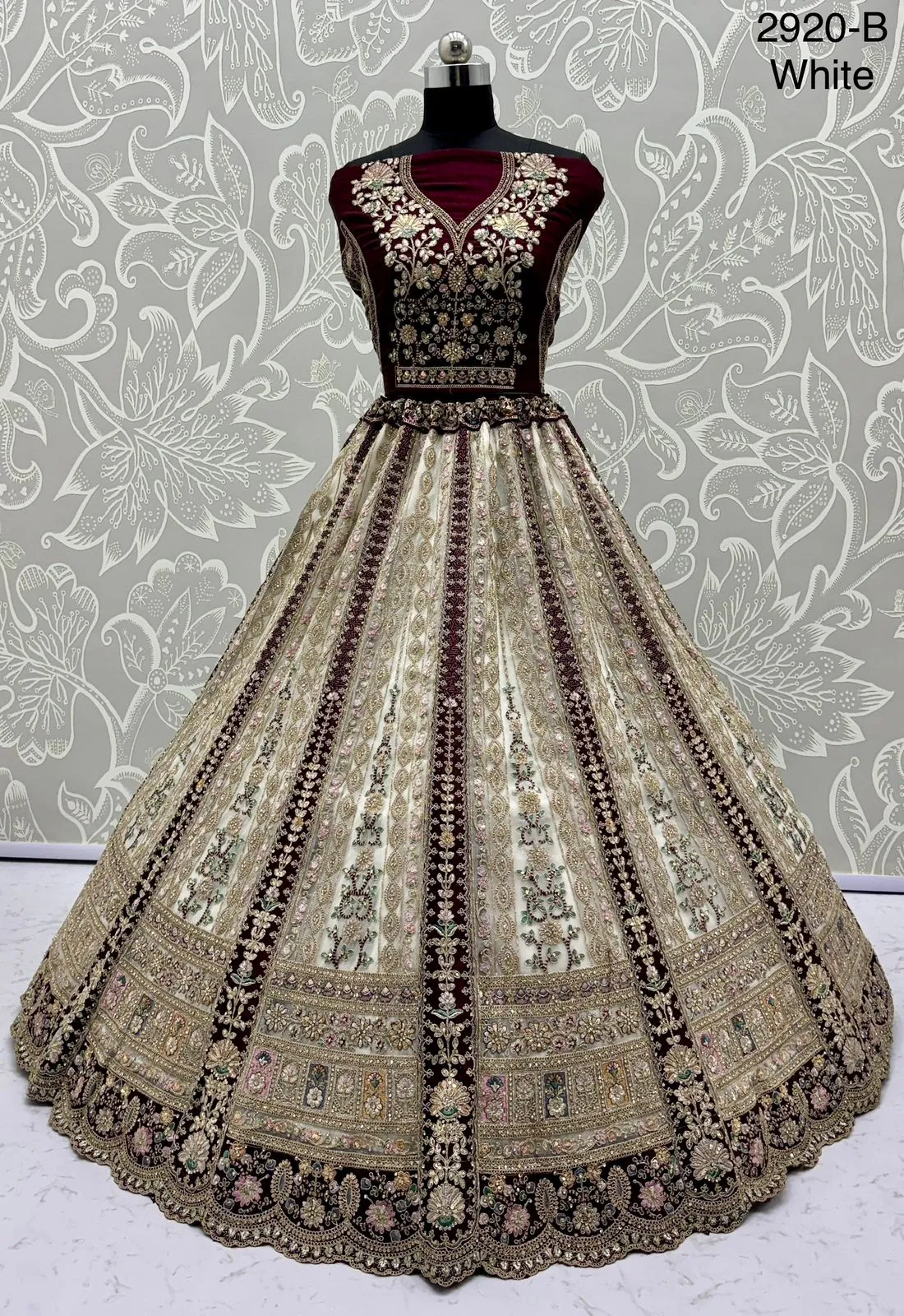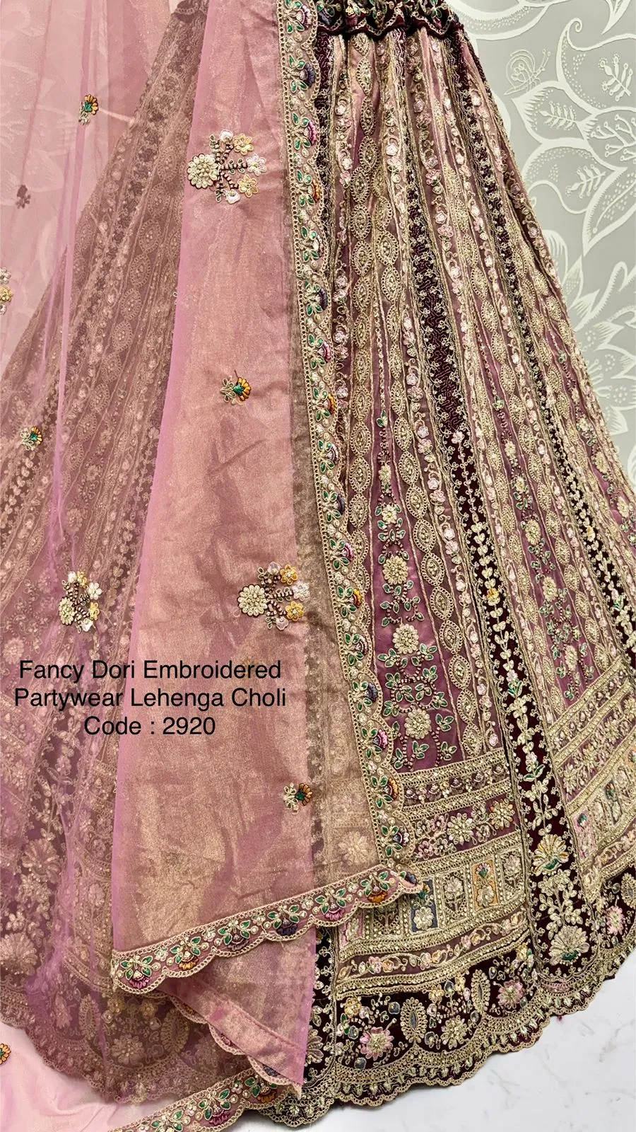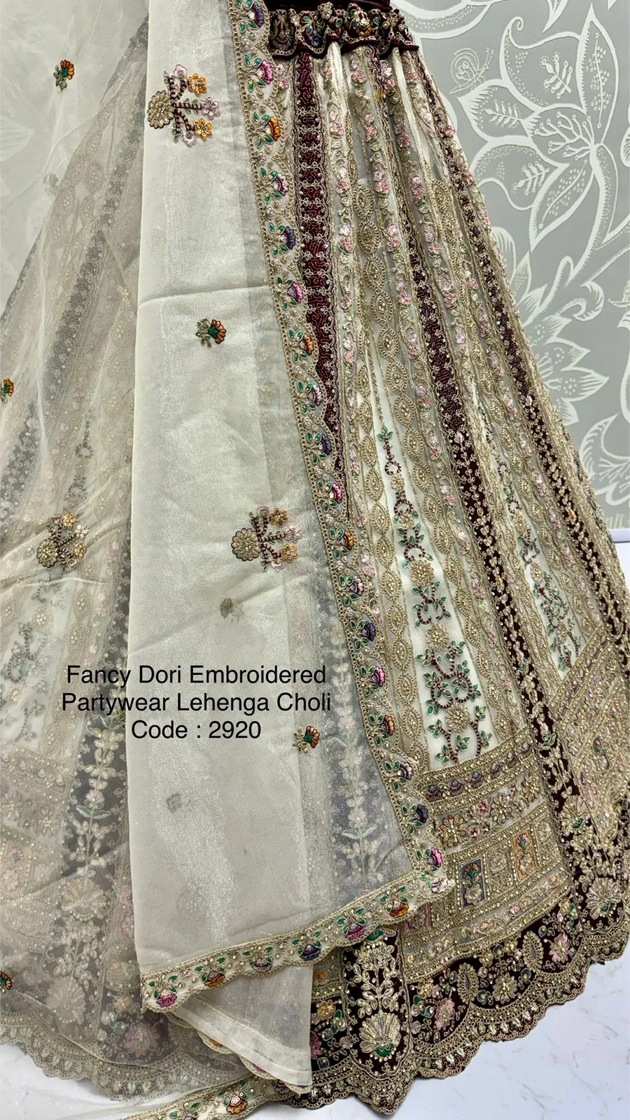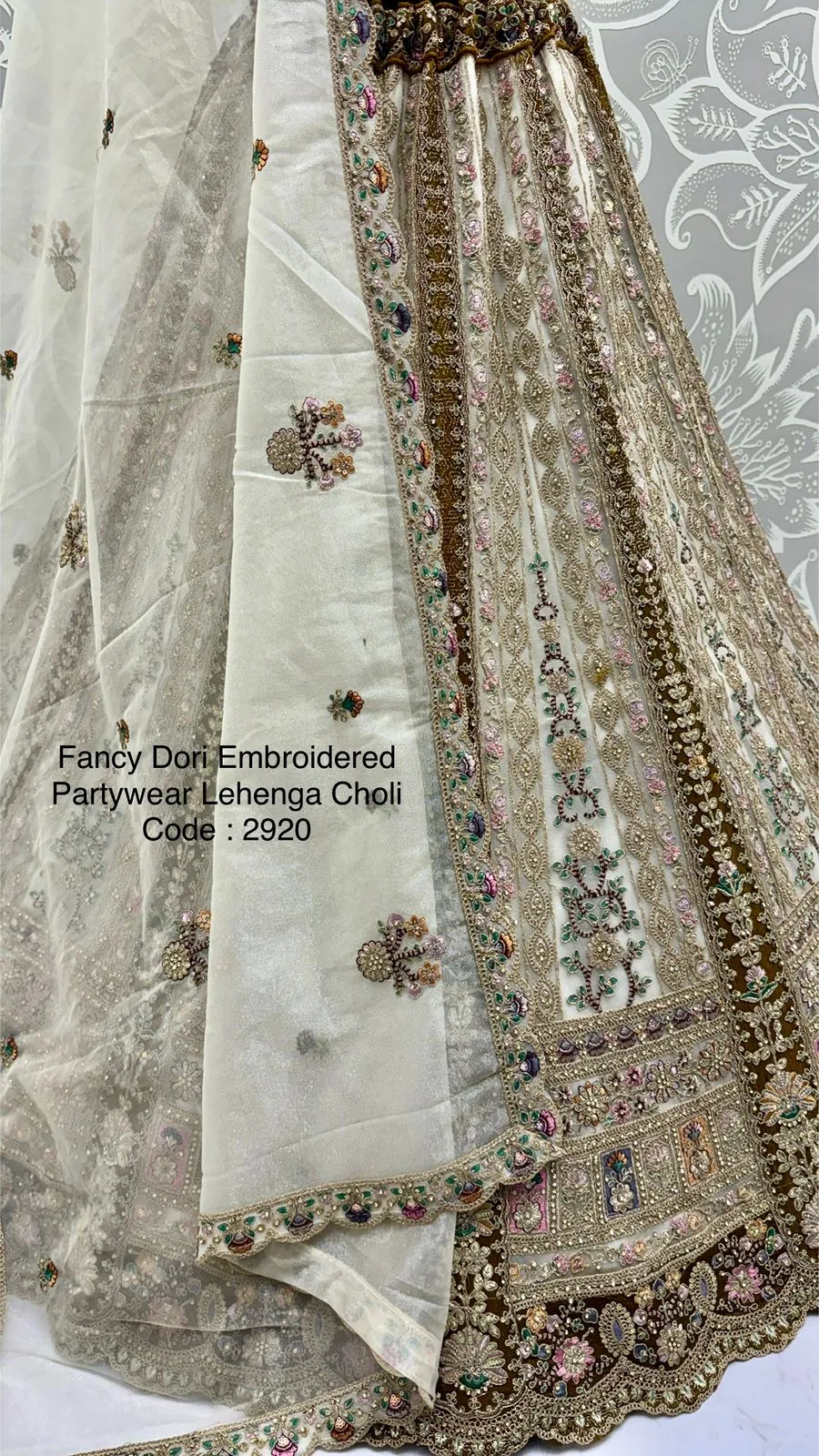 | Lehenga | Net with Dori Work, Multi Thread, Zari & Sequins Work, Diamond Work; Standard Cancan & Canvas Attached; Free Size Up To 42 |