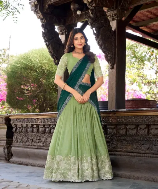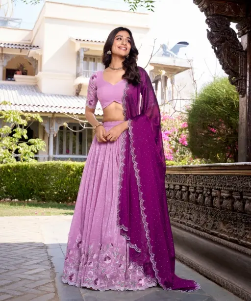 Lehenga Silver Glossy Sequins and Thread Embroidery Work With Hotfix Length : 41 Flair : 3.80 Meter