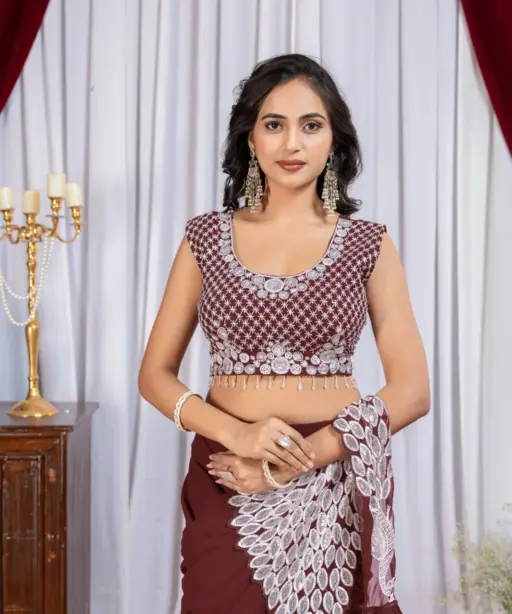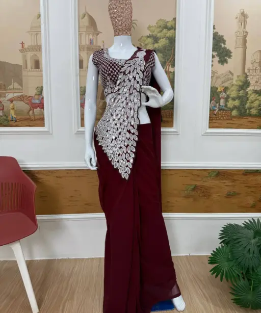 | Saree | FAUX GEORGETTE EMBROIDERY THREAD & SEQUINS WORK / READY TO WEAR / 5.5 mtr |
