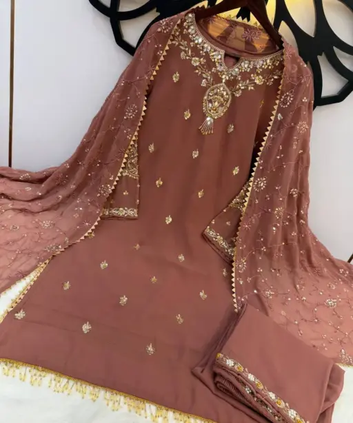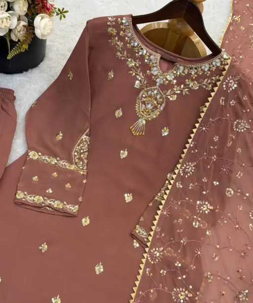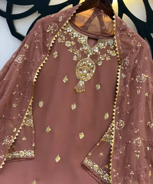 | Top | Heavy Faux Georgette With Heavy Embroidery Sequence Work With Beads Work With Full Sleeve 41-42 Inch Length |