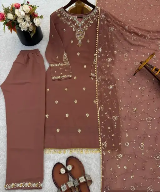 Brown Straight Readymade Pakistani Suit Set