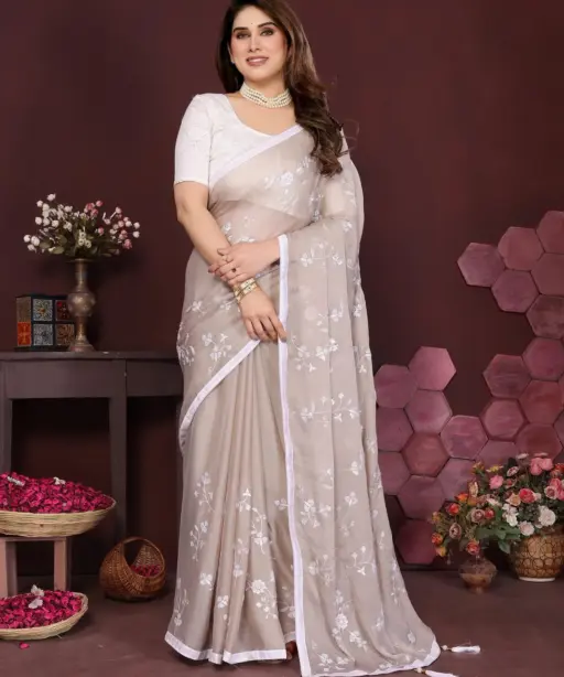 | Saree | Moss Chiffon Silk with Heavy Embroidery Work, Length 5.50 Mtr |