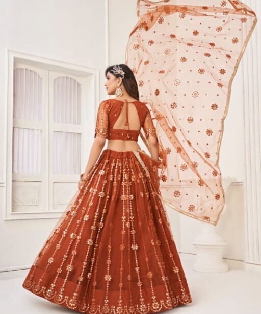 Buy Designer Orange Color Net Chaniya for Festive Wear – Traditional Glamour in Every Thread