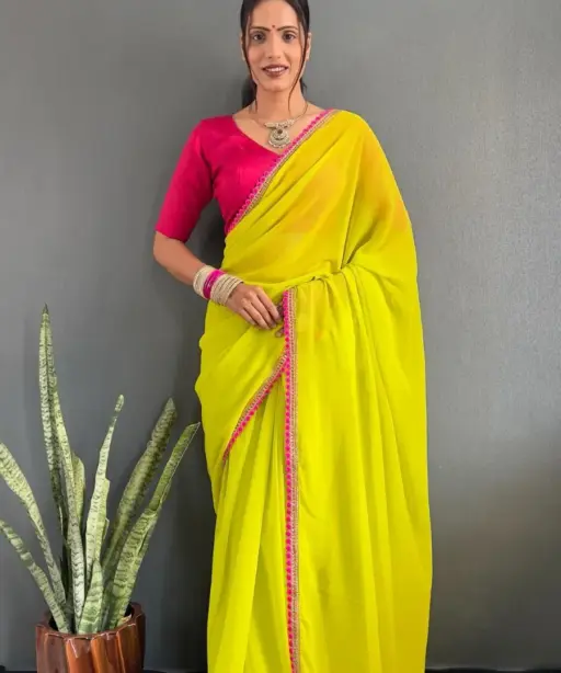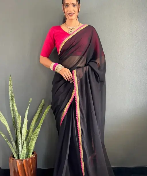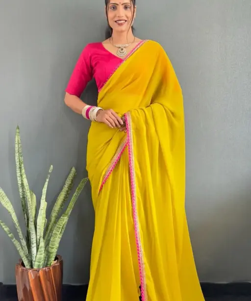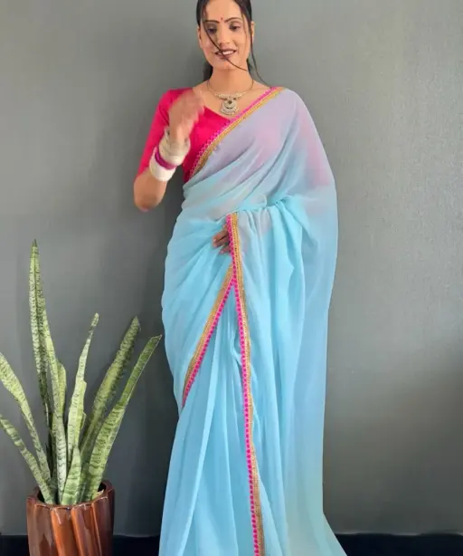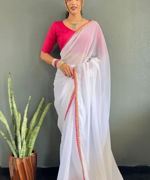 | Saree | Soft Georgette with Fancy Lace and Heavy Latkan on Pallu; Weight: 0.650 KG |
