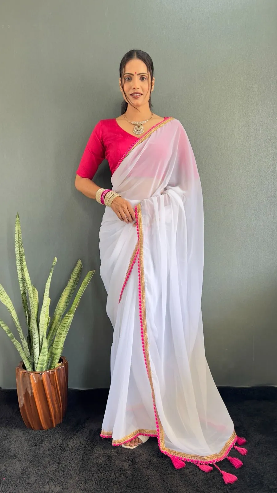| Saree | Soft Georgette with Fancy Lace and Heavy Latkan on Pallu; Weight: 0.650 KG |