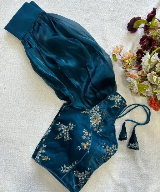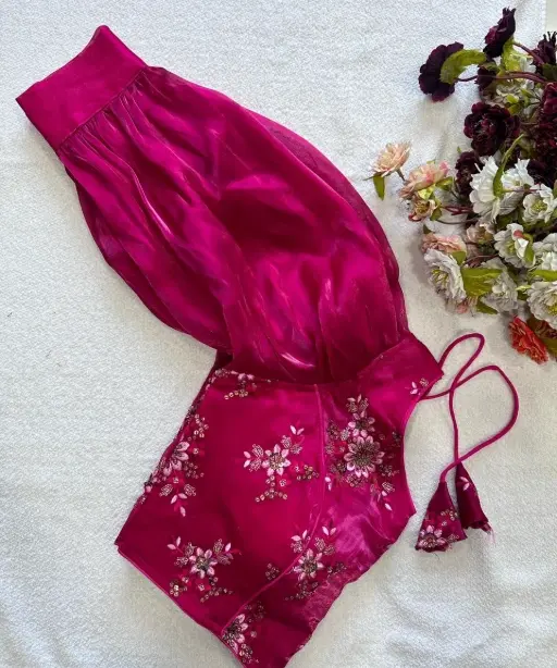 | Blouse | ZimiChooo with Heavy 9 Niddle Embroidery Work Classic Look of ZimiChooo Blooming Organza with Heavy Work Size Up to 40 Height 15 Work 9Niddle Heavy Embroidery Padded |