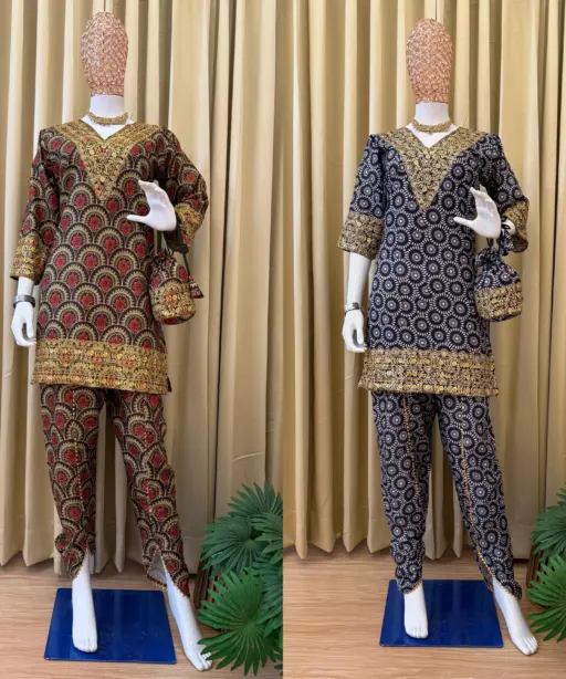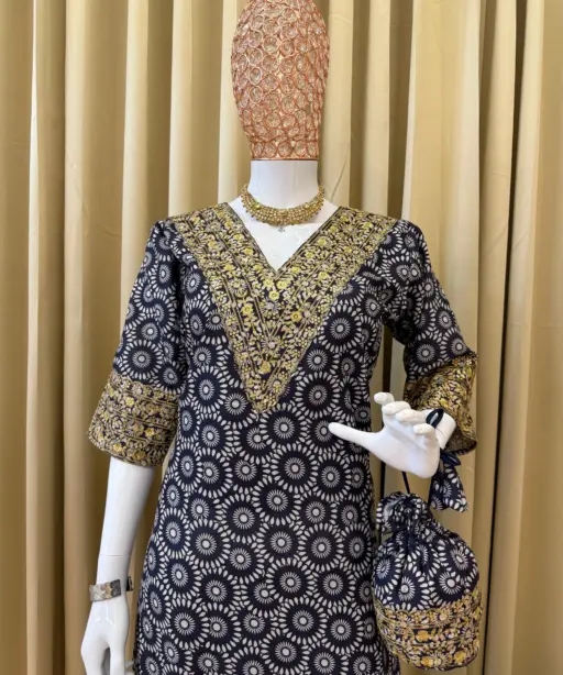 TopMul Cotton with Embroidery Work on Neck & Daman Patta, Sleeve Length 18 Inch, Height 35 Inch