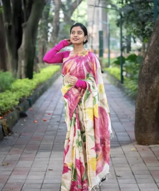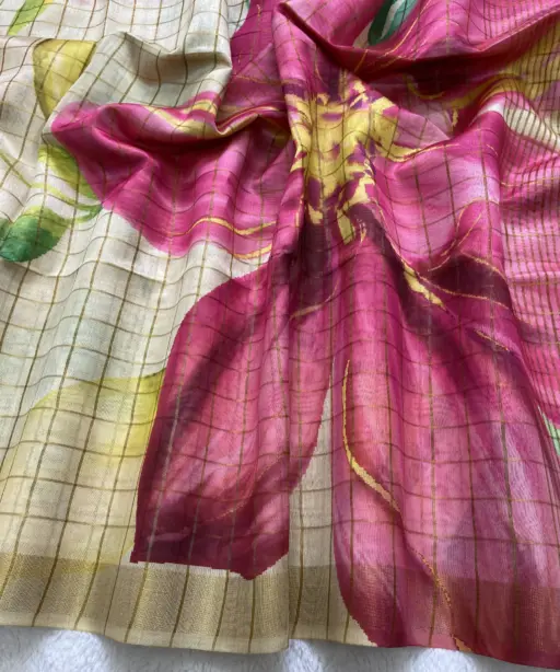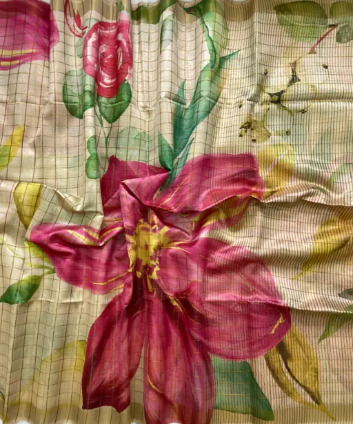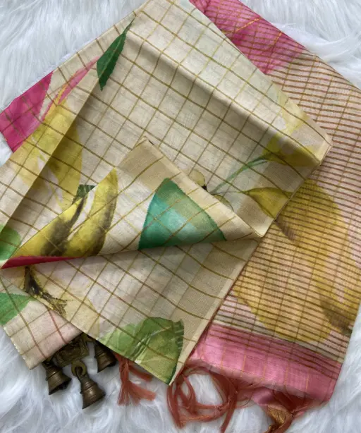 | Saree | Soft Tussar Silk with Beautiful Print, Attractive Zari Line & Tassels |