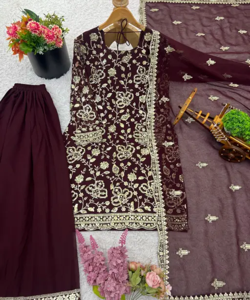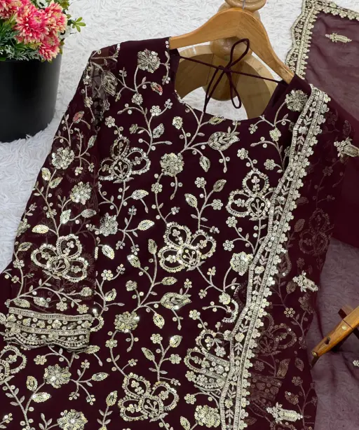| Top | Heavy Faux Georgette with 5mm Embroidery Sequence Work (Full Sleeve), Inner: Heavy Micro Cotton, Length: 37-38 Inch |