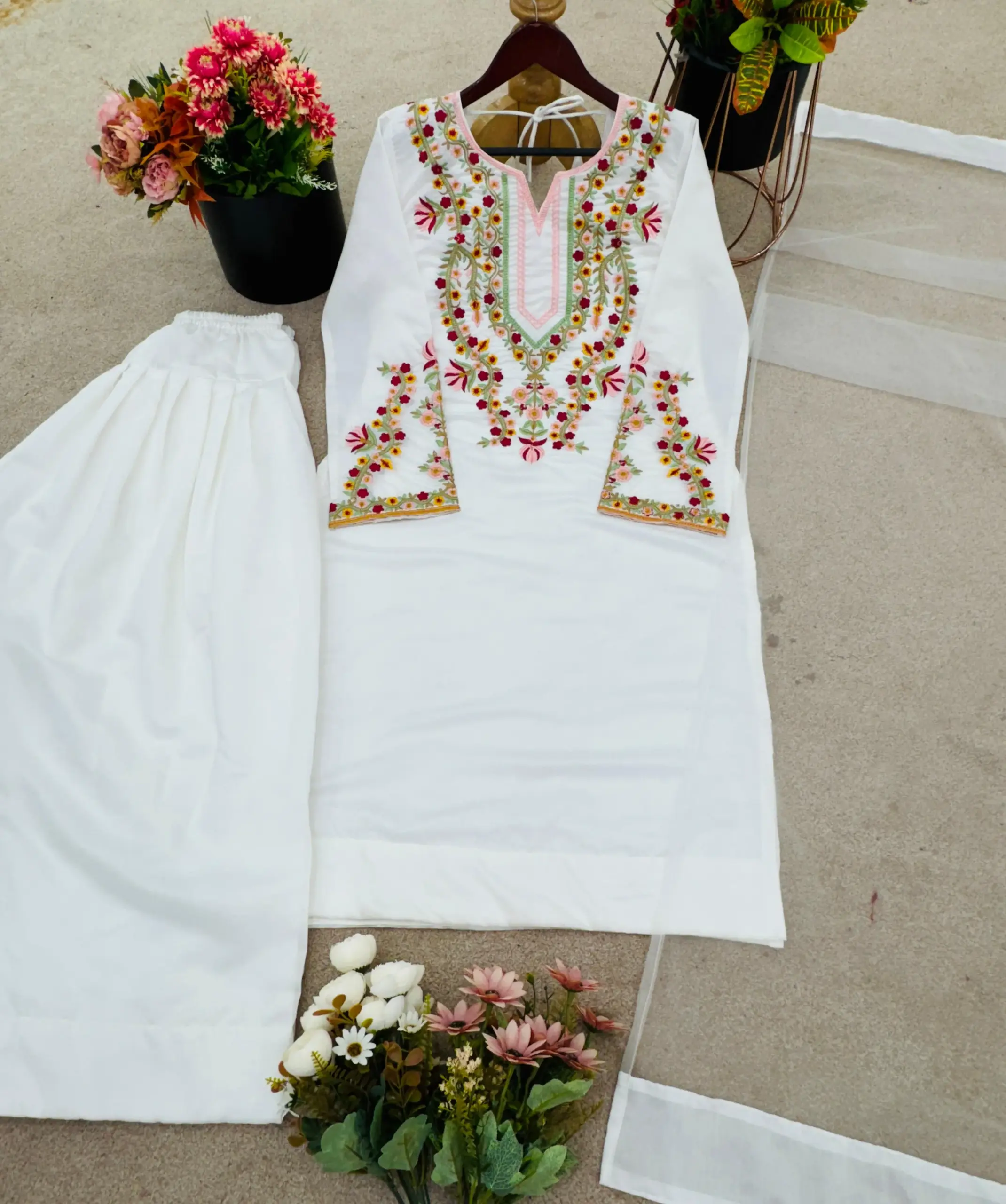 Buy White Co ord Set with Embroidery