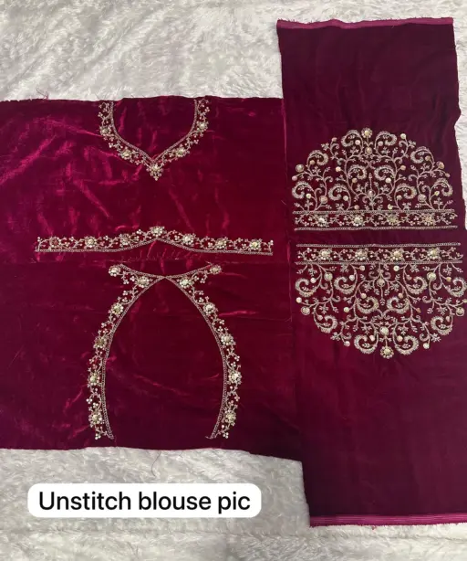 | Blouse | 11000 Velvet With Sequins, Dori & Zari Thread Work Front & Back (Unstitched) |