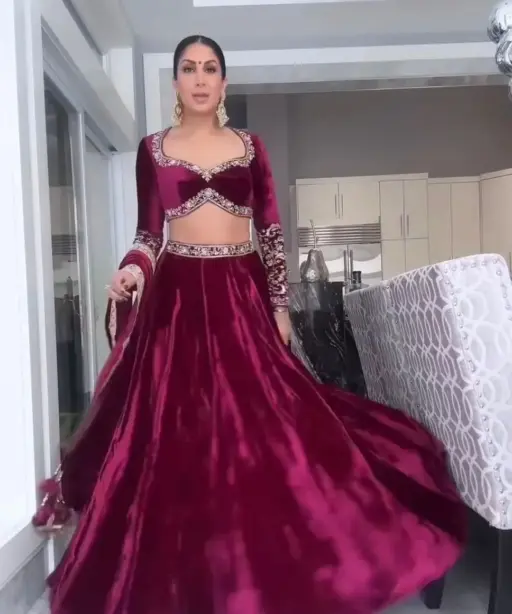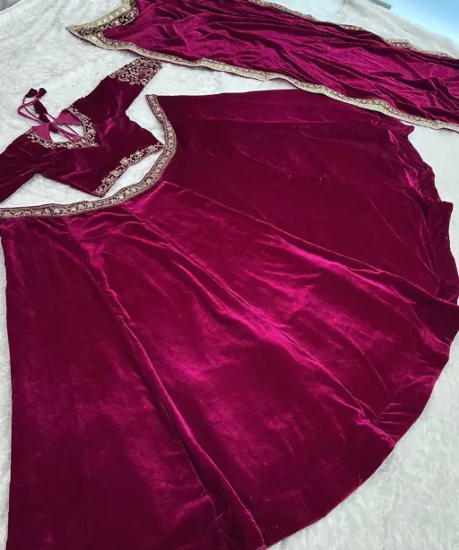| Lehenga | 11000 Velvet With Sequins, Dori & Zari Thread Work (3.75 Meter Flair, Cancan Attached) |