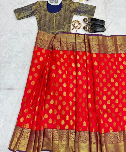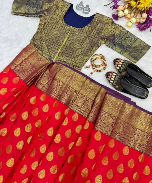 | Top | Lichi Silk with Jequard Work (Length: 56-58, Sizes: M(38), L(40), XL(42), XXL(44), Inner: Micro Cotton) |