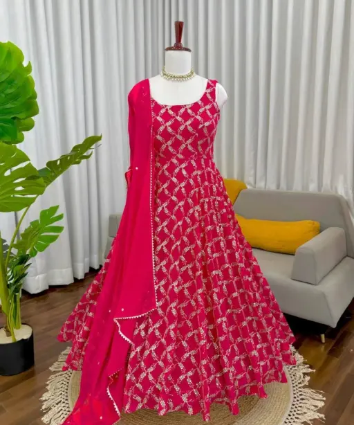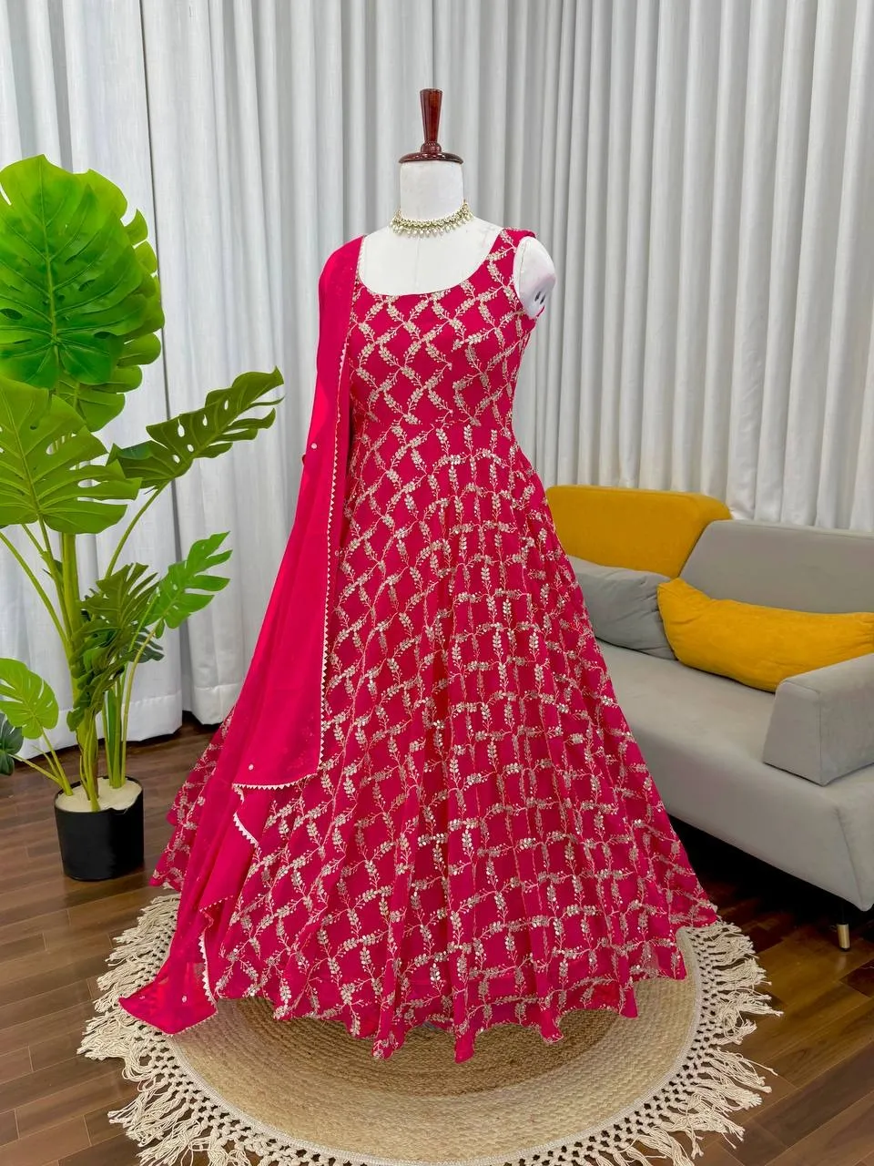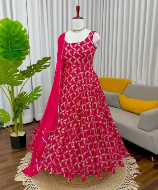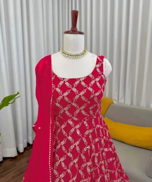 | Dupatta | Foux Georgette thread with 9mm Sequence with 4-Side work border 2.2 meters Length |