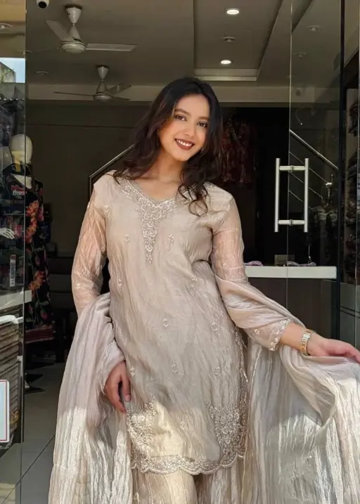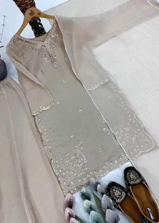Chiku Color Pakistani Embroidery Plazzo Dress