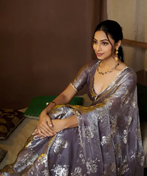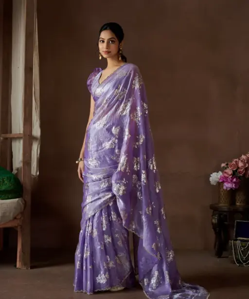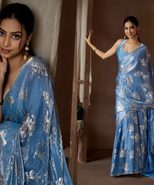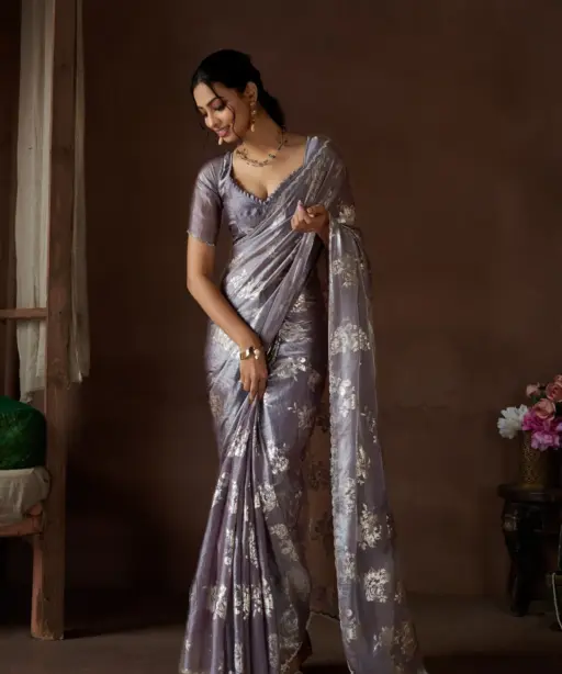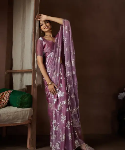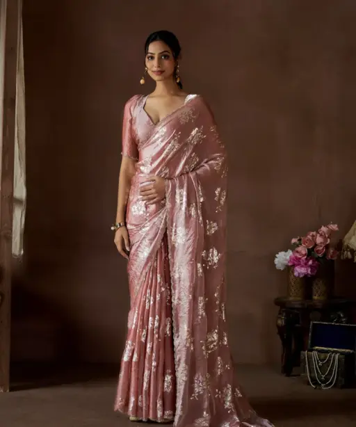 | Saree | NC Satin Silk with Foil Print and Handwork Jarquen |