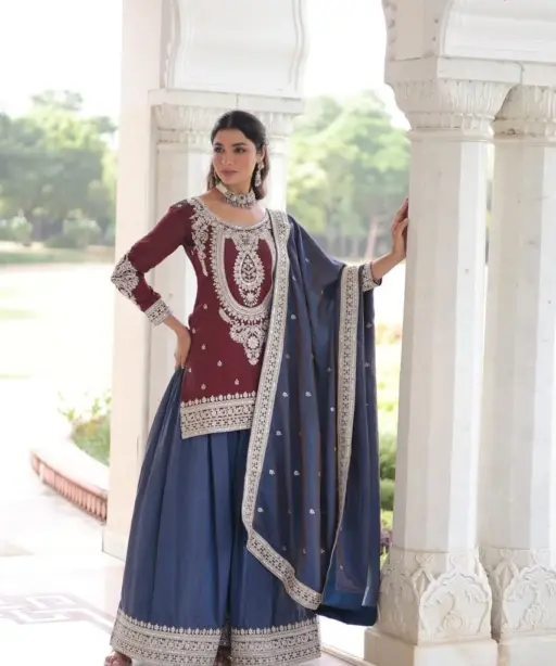 Contrast Short Shirt Plazzo Pakistani Dress for Eid