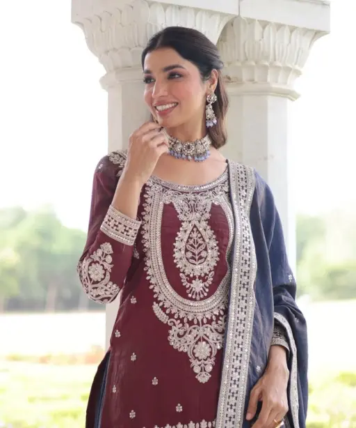 TopNC Silk With Sequins and Codding Embroidered work 32-34 INCH Length