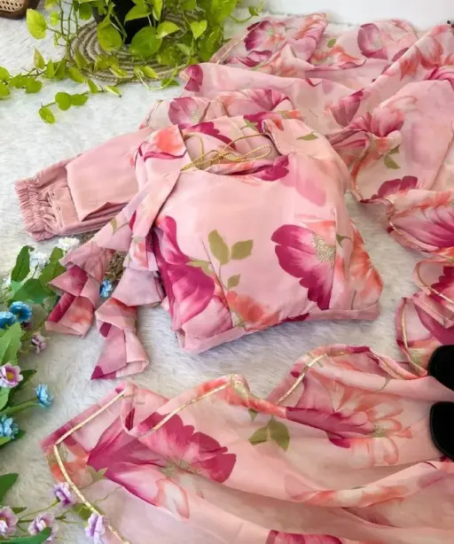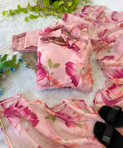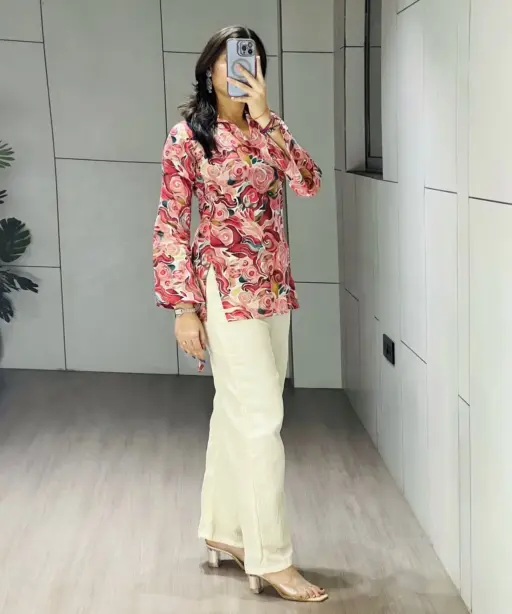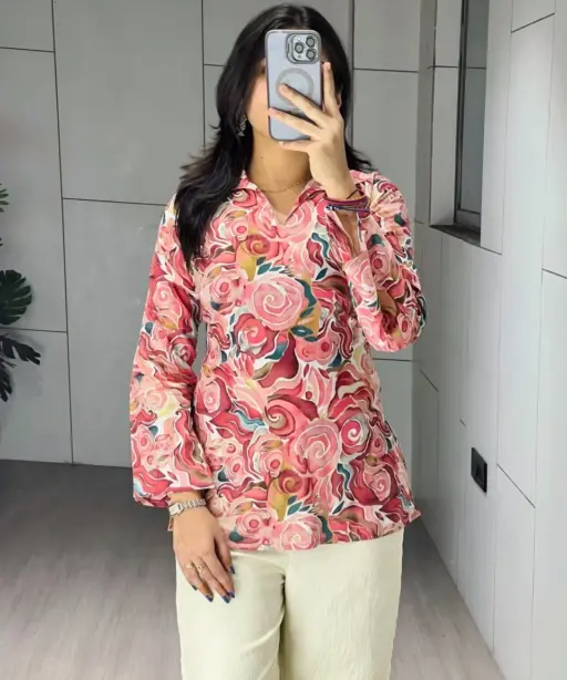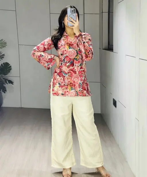 TopCambric Cotton Printed With Foil Work and Back side Dori Pattern Length 28 inch, Sleeve Length 22 Inch