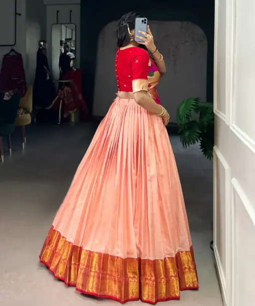 | Lehenga | Cotton Silk with Zari Weaving Work, Stitched with Canvas, Inner: Micro Crepe |