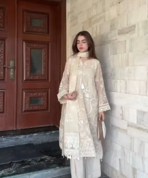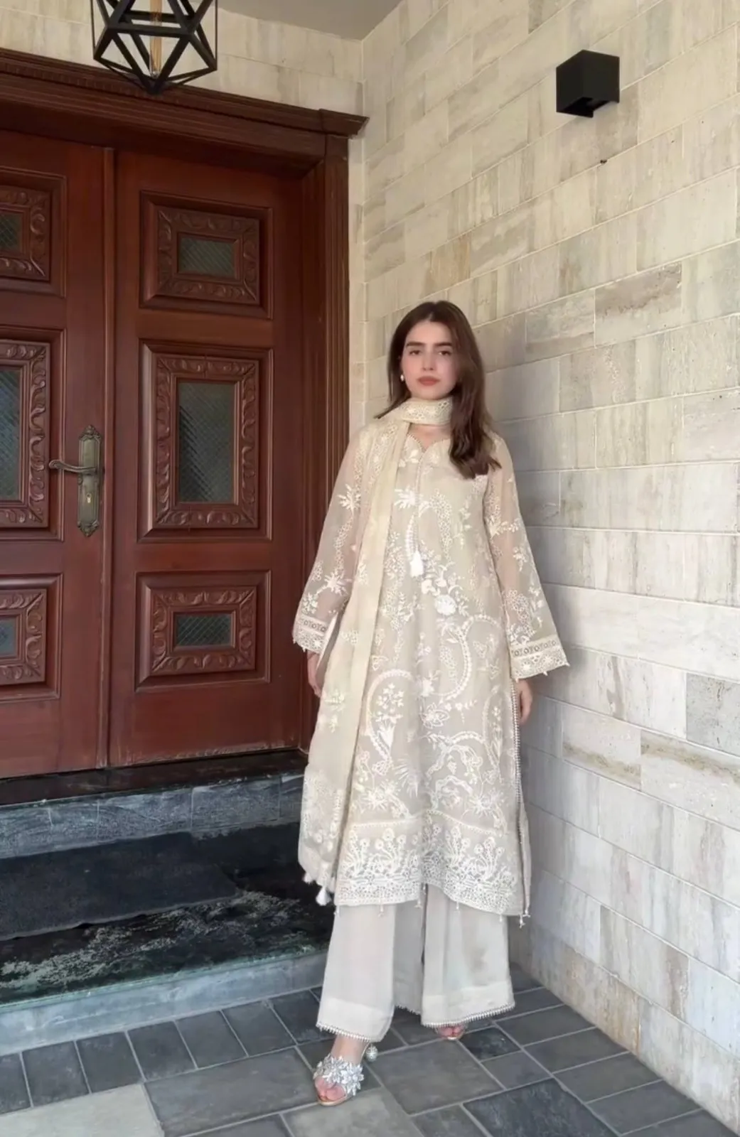 TopHeavy Faux Georgette With Heavy Embroidery Work With Sleeves With Moti Latkan 45-46 Inch Length