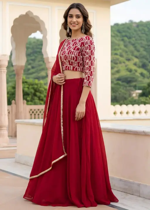 | Lehenga | Georgette 4.50 mtr approx waist-43″ Length-43″ Canvas and Cancan layer attached |