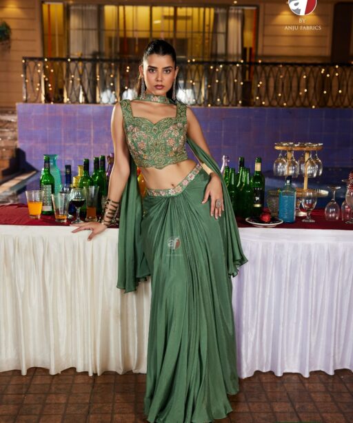 Designer Boutique Style Crop Top with Drape Skirt & Dupatta Ajnu Fabrics Wholesalers