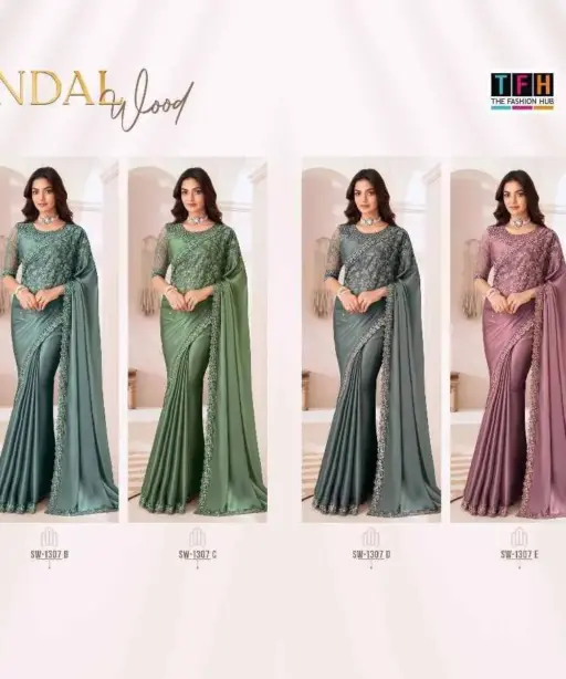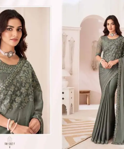 Designer Emroidery Work Party Wear Saree Tfh Sandalwood 1307 Colours