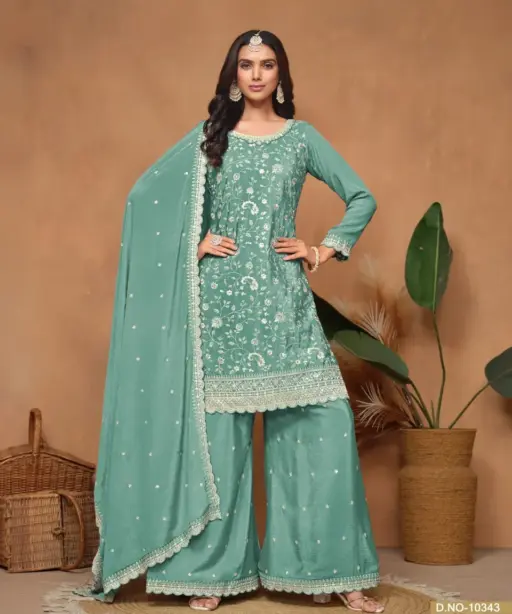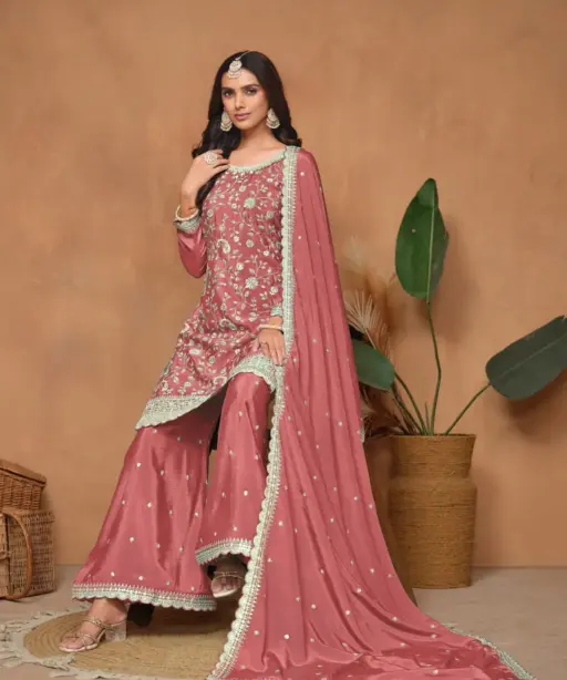 Designer Flower Embroidery Heavy Ethnic Plazzo Suit