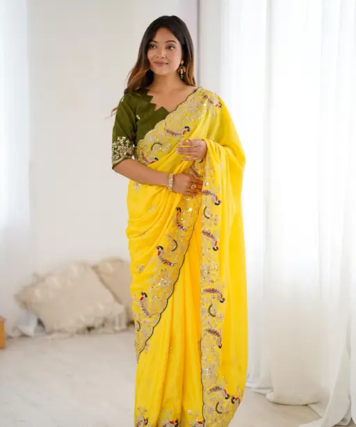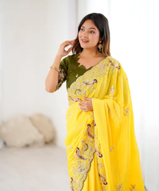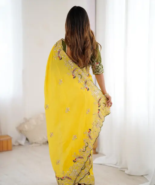 Designer Haldi Wear Yellow Saree