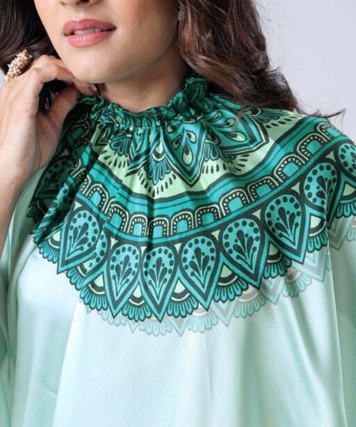 Embrace the fusion of convenience and traditional elegance with the Designer Hand Free Saree With Neck Style from EthnicSuits.in. This unique hand-free saree features a stunning digital print that adds modern charm to a timeless style. Designed for women who love the elegance of a saree but prefer the ease of ready-to-wear, this free hand saree offers an effortlessly chic solution.