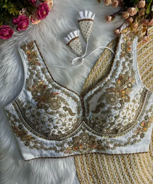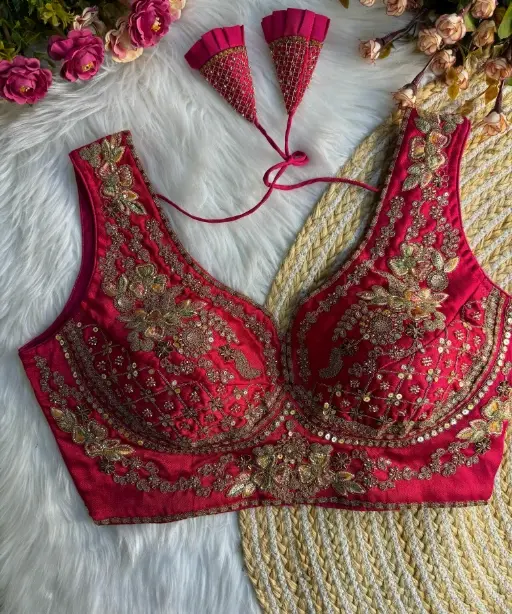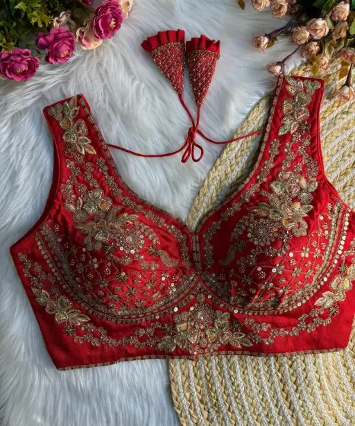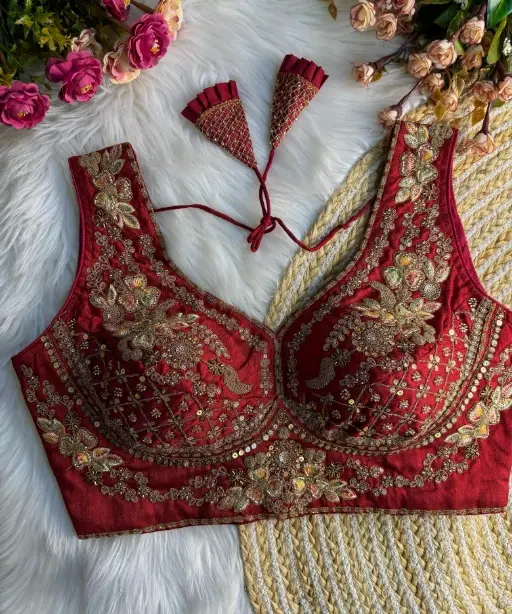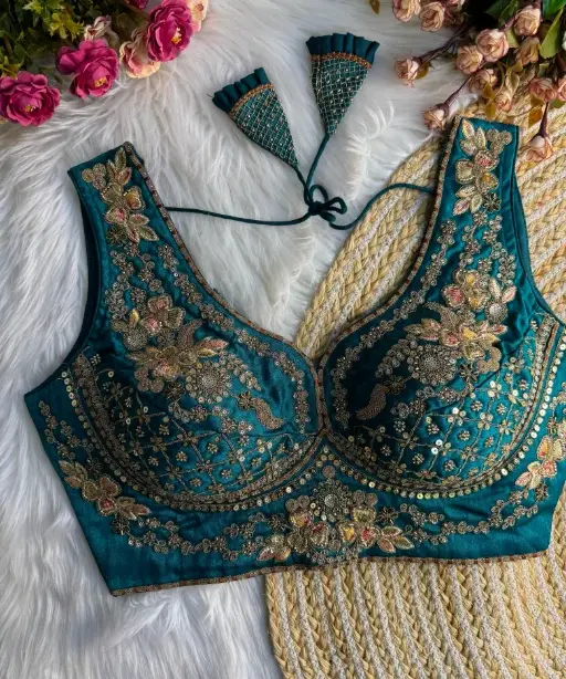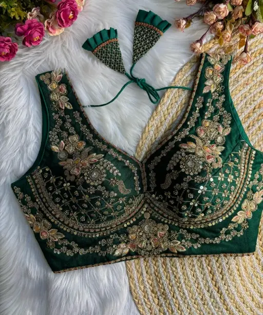 While the blouse is richly embellished, it is also designed for long wear. Soft inner lining and breathable fabric ensure that you stay comfortable throughout your event, from wedding rituals to dance performances. The hook, tie-back, or dori options provide a secure and adjustable fit.