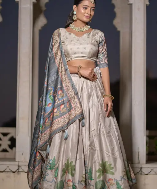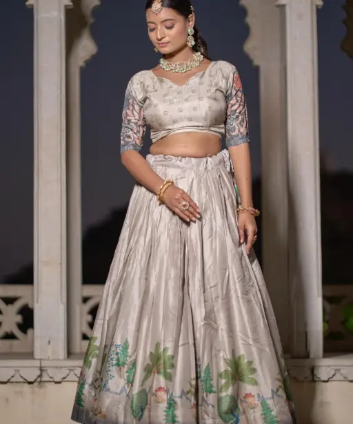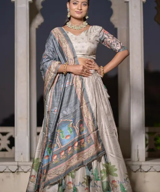 LehengaPure Manipuri Silk with Fully Printed Design and Contrast Border