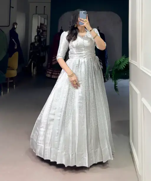 Gown Work : Zari Weaving Work With Lace Touch Up