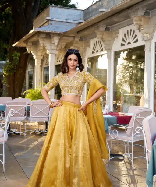 Designer Mustard Yellow Haldi Function Wear Lehenga Choli