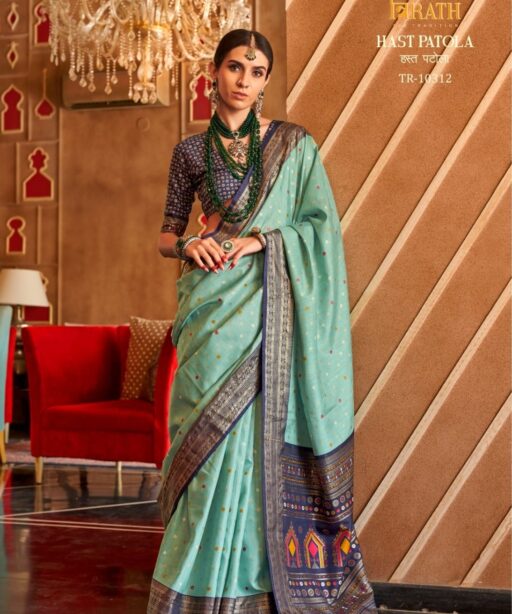 SareeMercerizer Sigma Silk Classic Patola Design With Sambalpuri Pallu With Aqua Finish