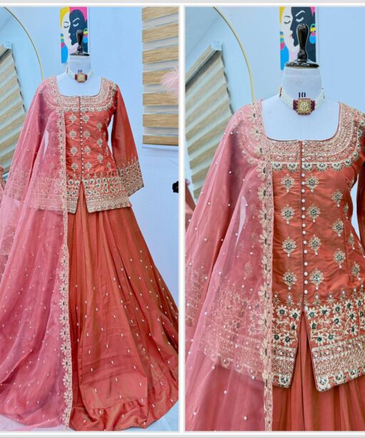 | Lehenga | Simmer Silk Moti Work 44 Free Size 5 MTR Flair |